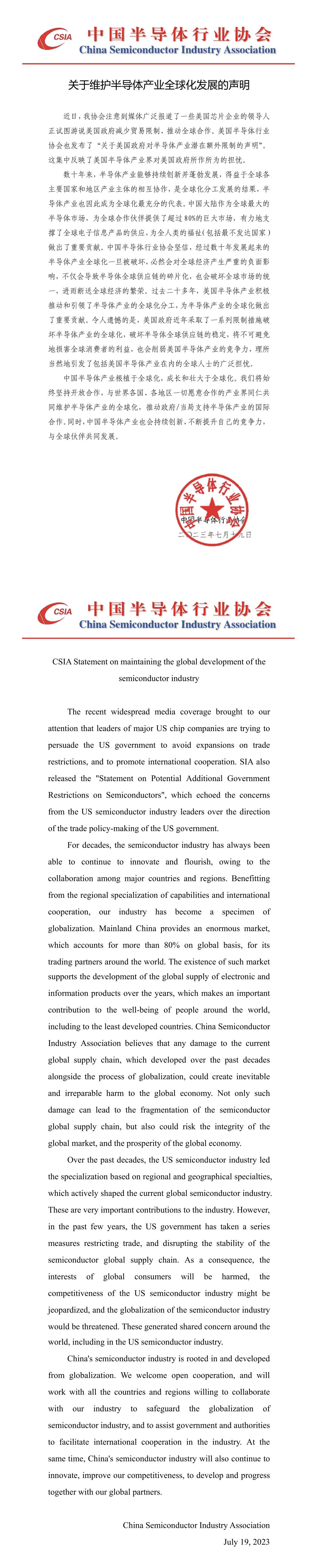 中國半導(dǎo)體行業(yè)協(xié)會關(guān)于維護(hù)半導(dǎo)體產(chǎn)業(yè)全球化發(fā)展的聲明